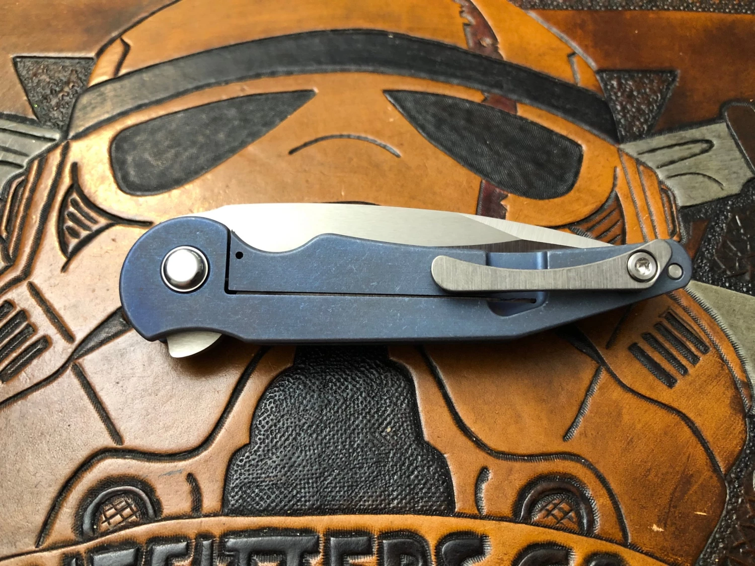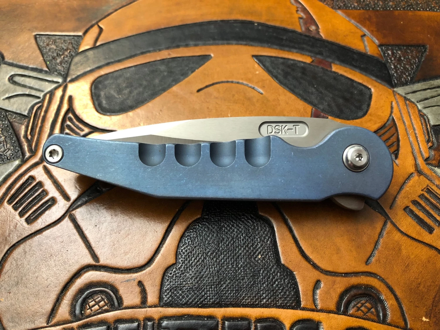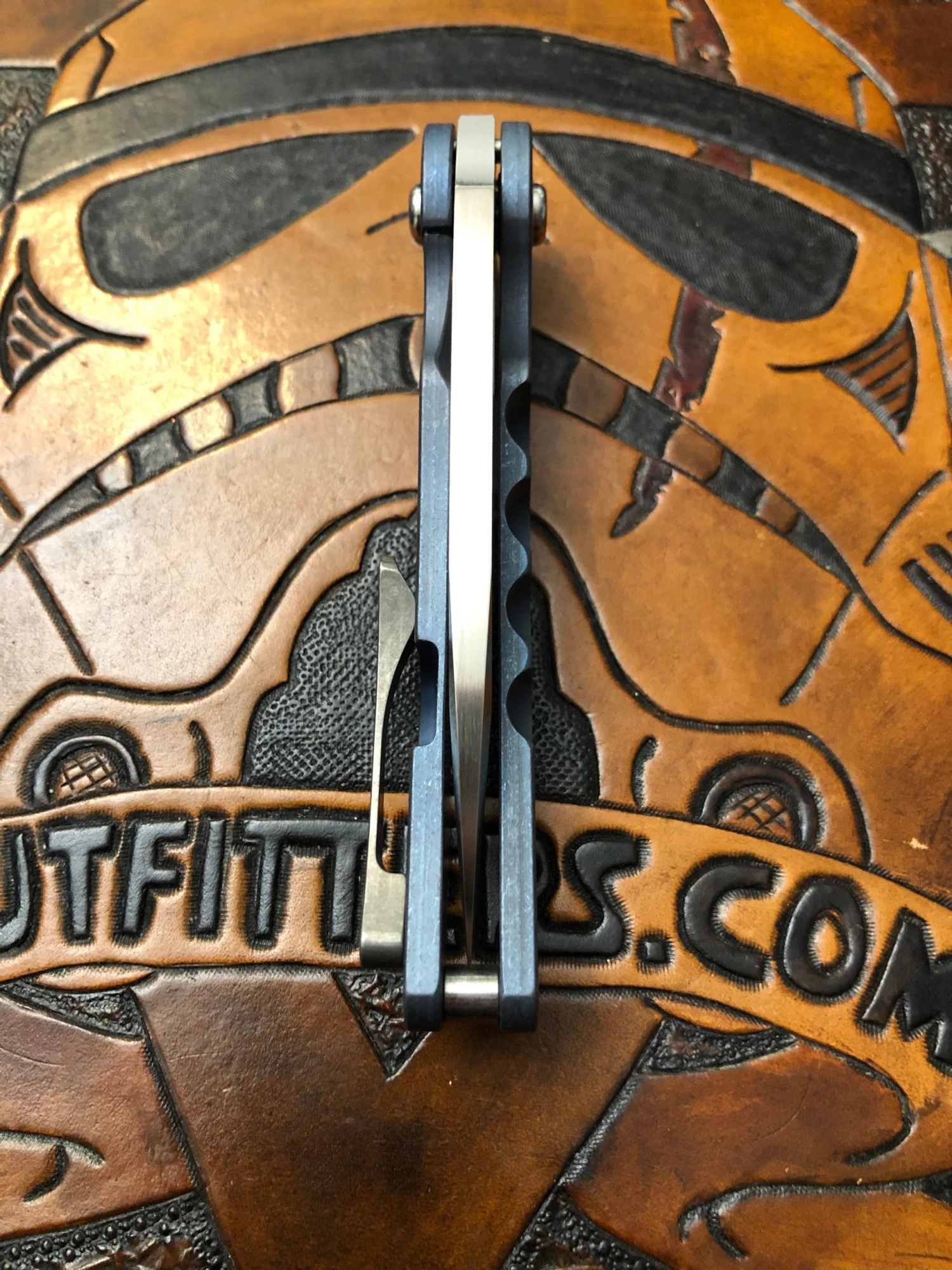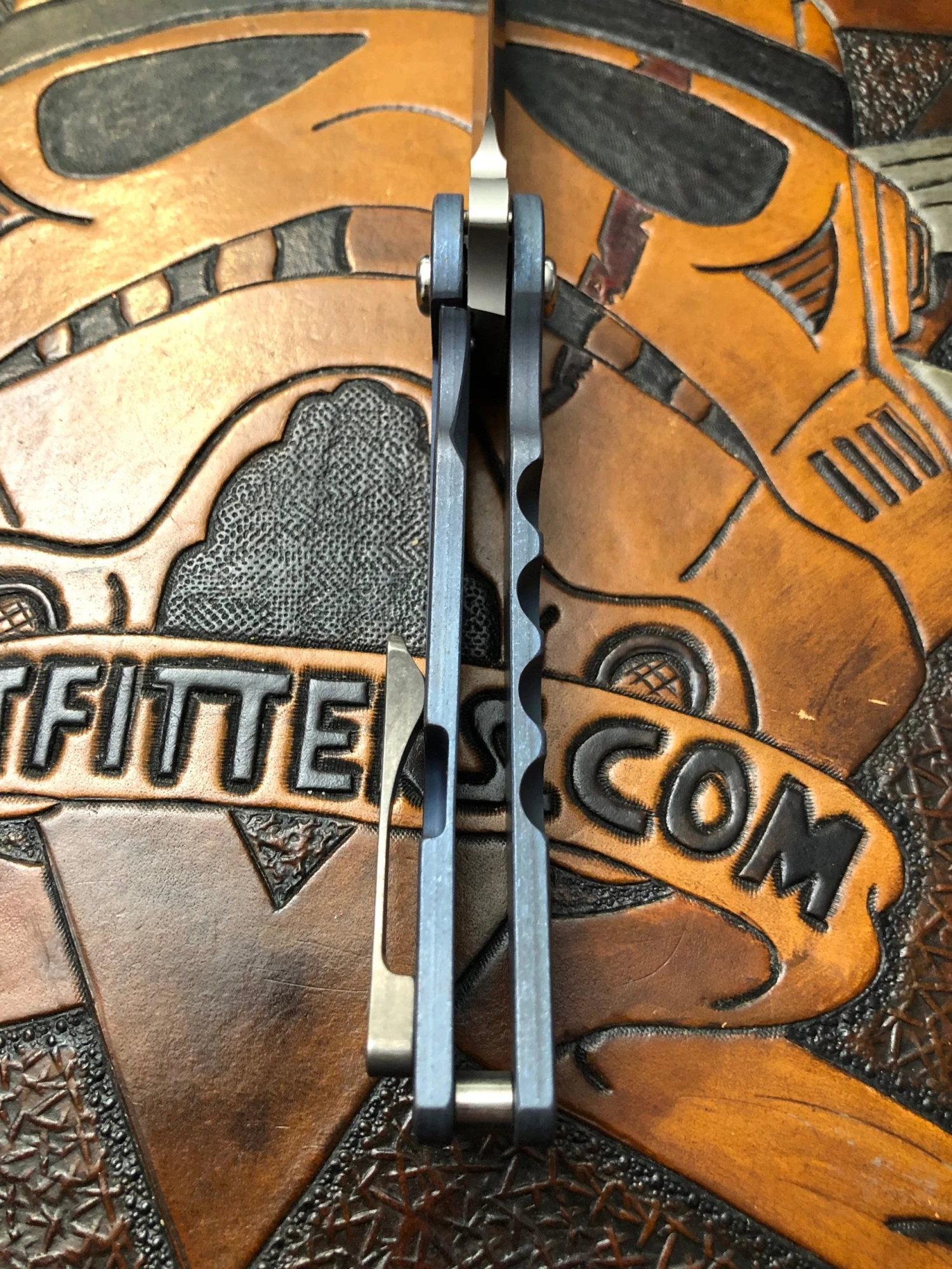 Handle – 4 11/16″ Stonewashed then Blue anodized Titanium with milling
