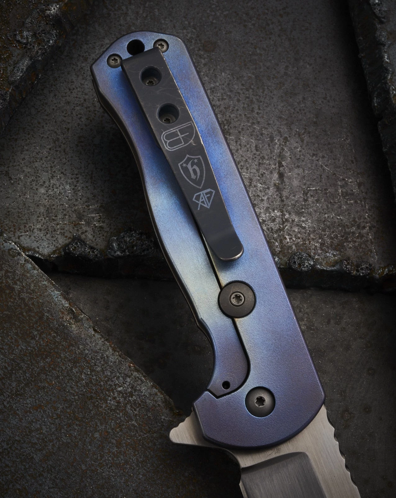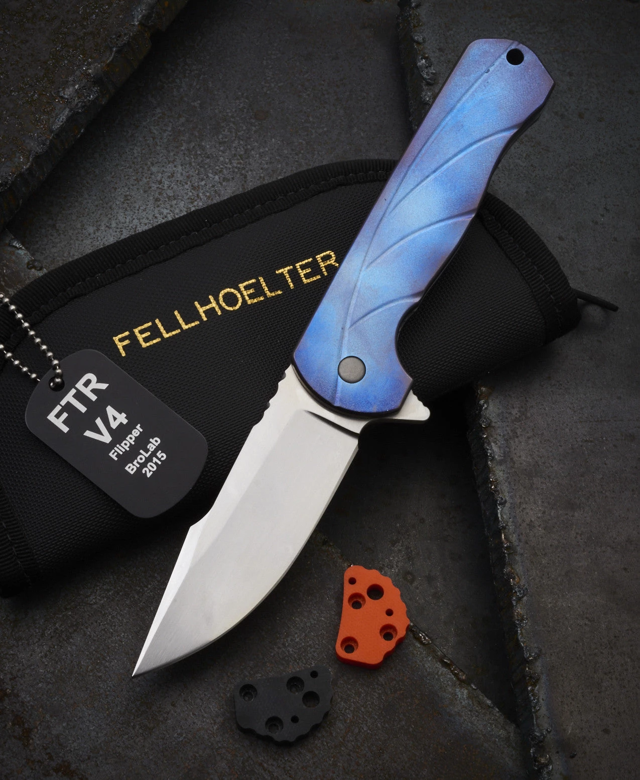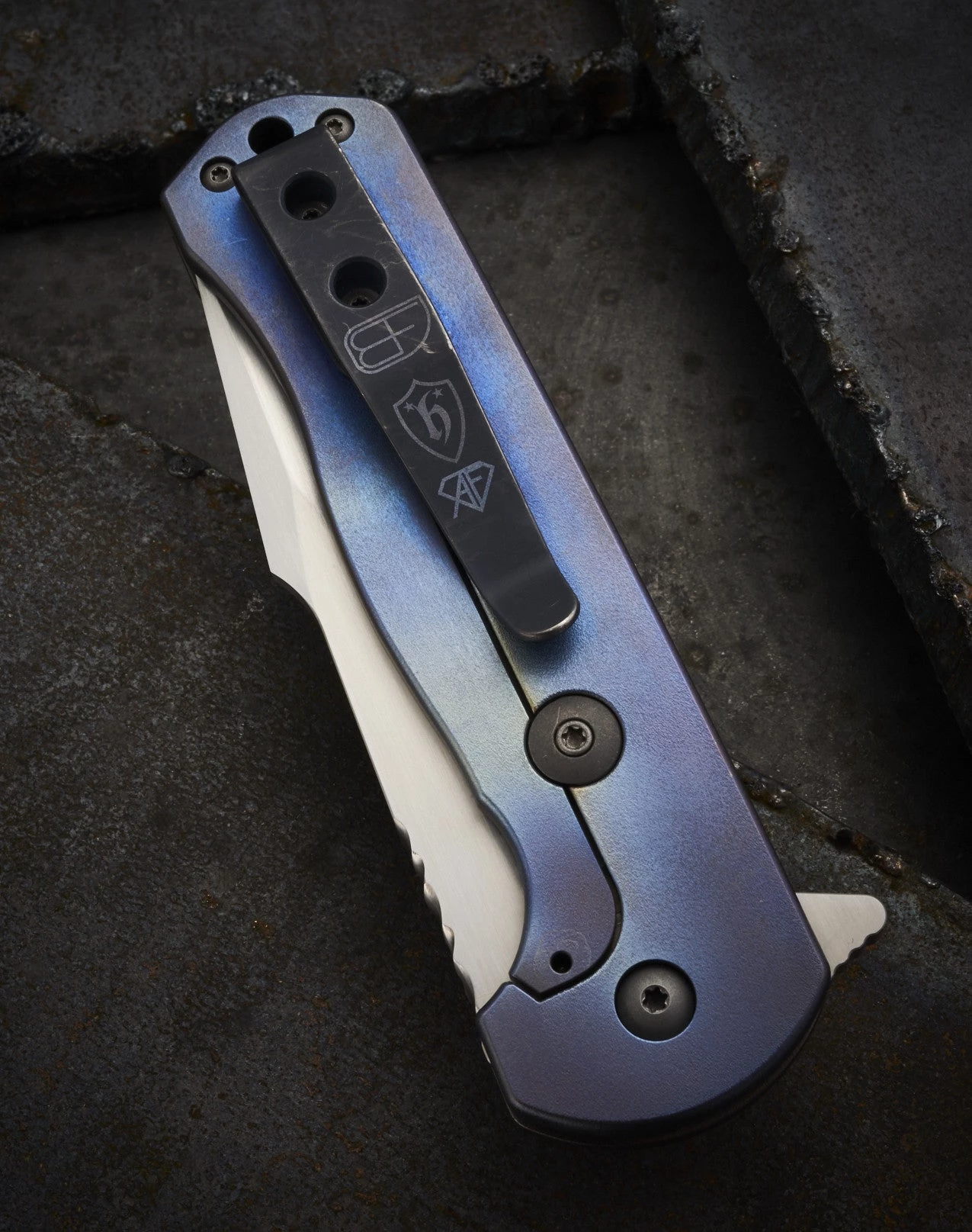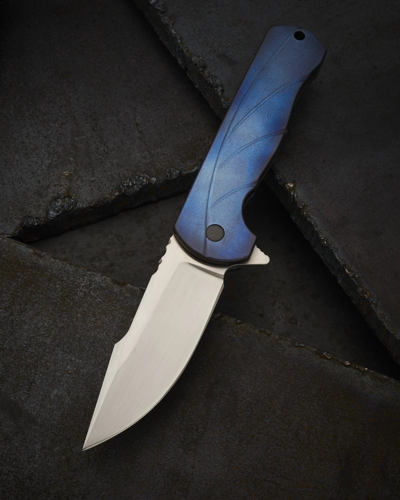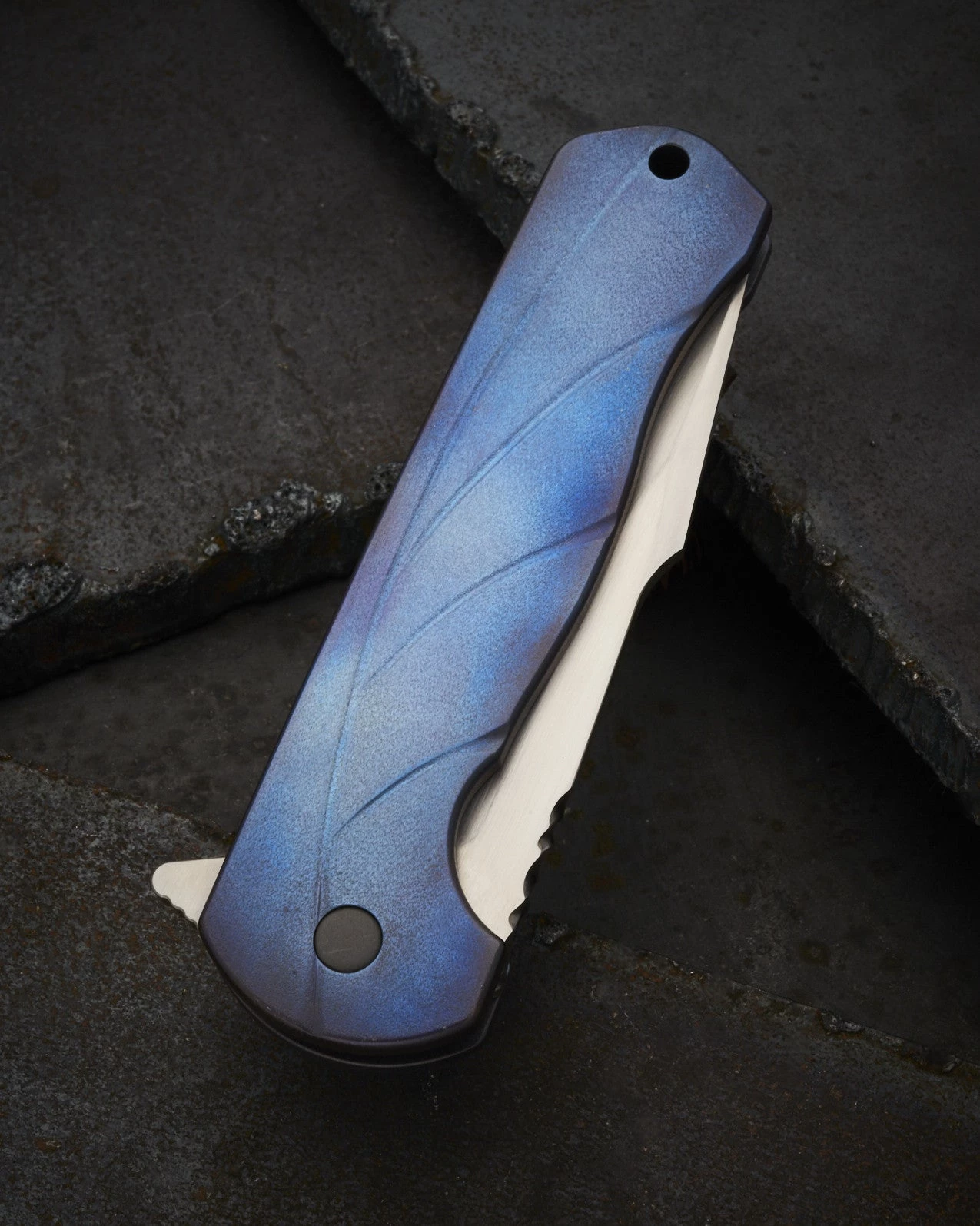 Handle – 5″ Anodized Titanium Scales with Milling. Geared Moku-Ti Backspacer. Includes two other backspaces which are Orange and Black.Â