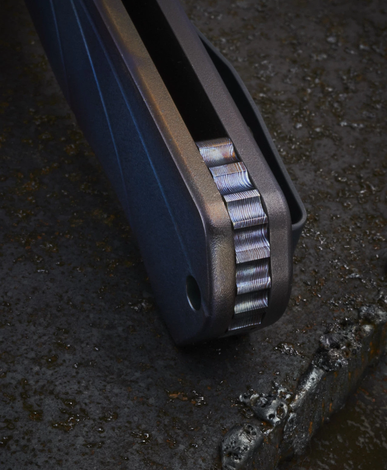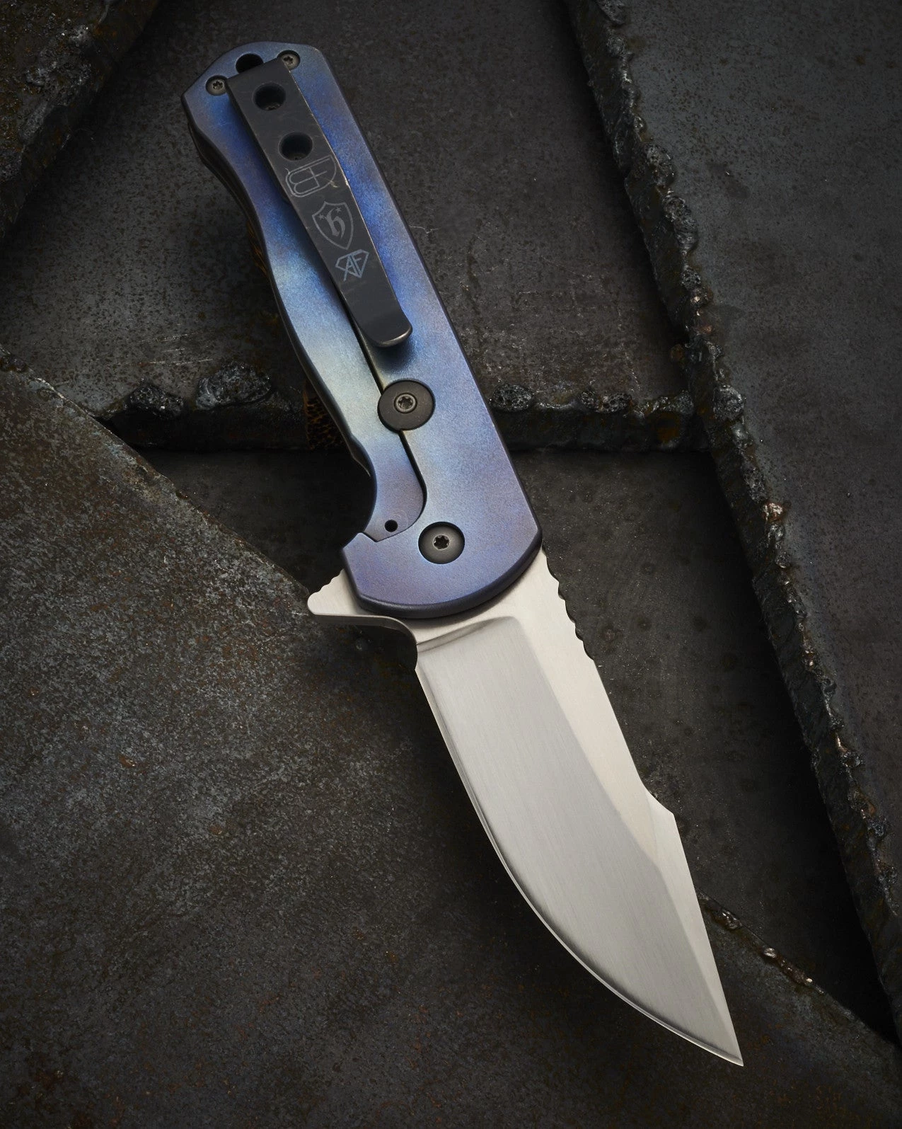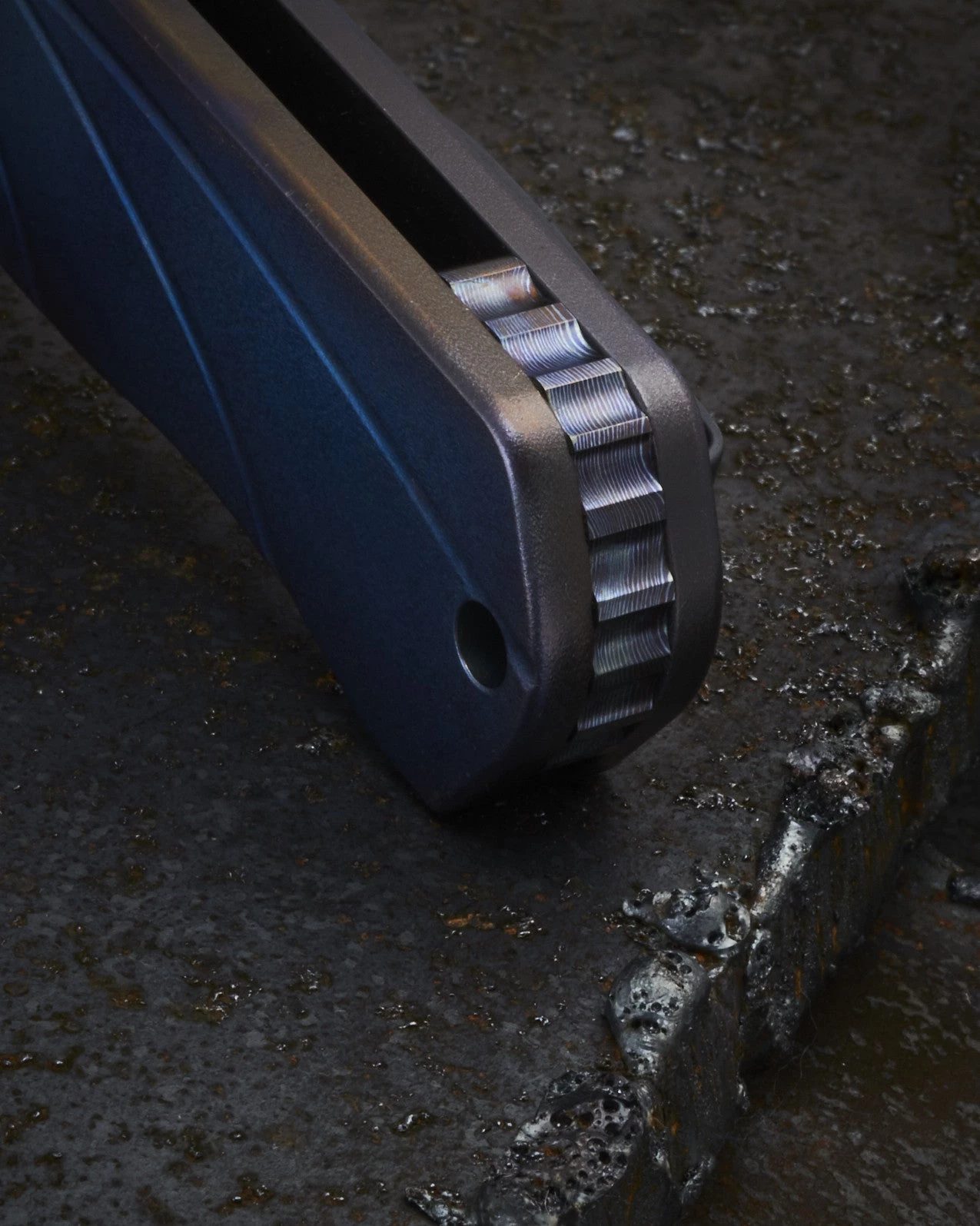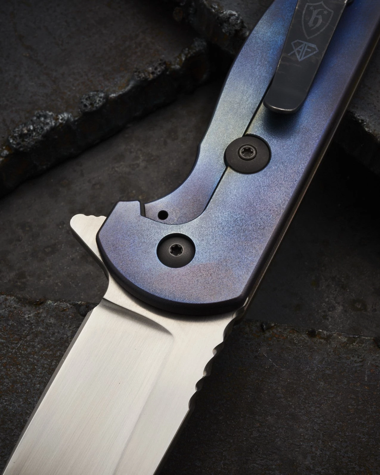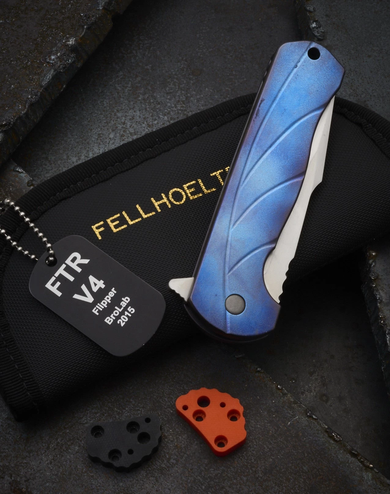 Handle – 5″ Anodized Titanium Scales with Milling. Geared Moku-Ti Backspacer. Includes two other backspaces which are Orange and Black.Â