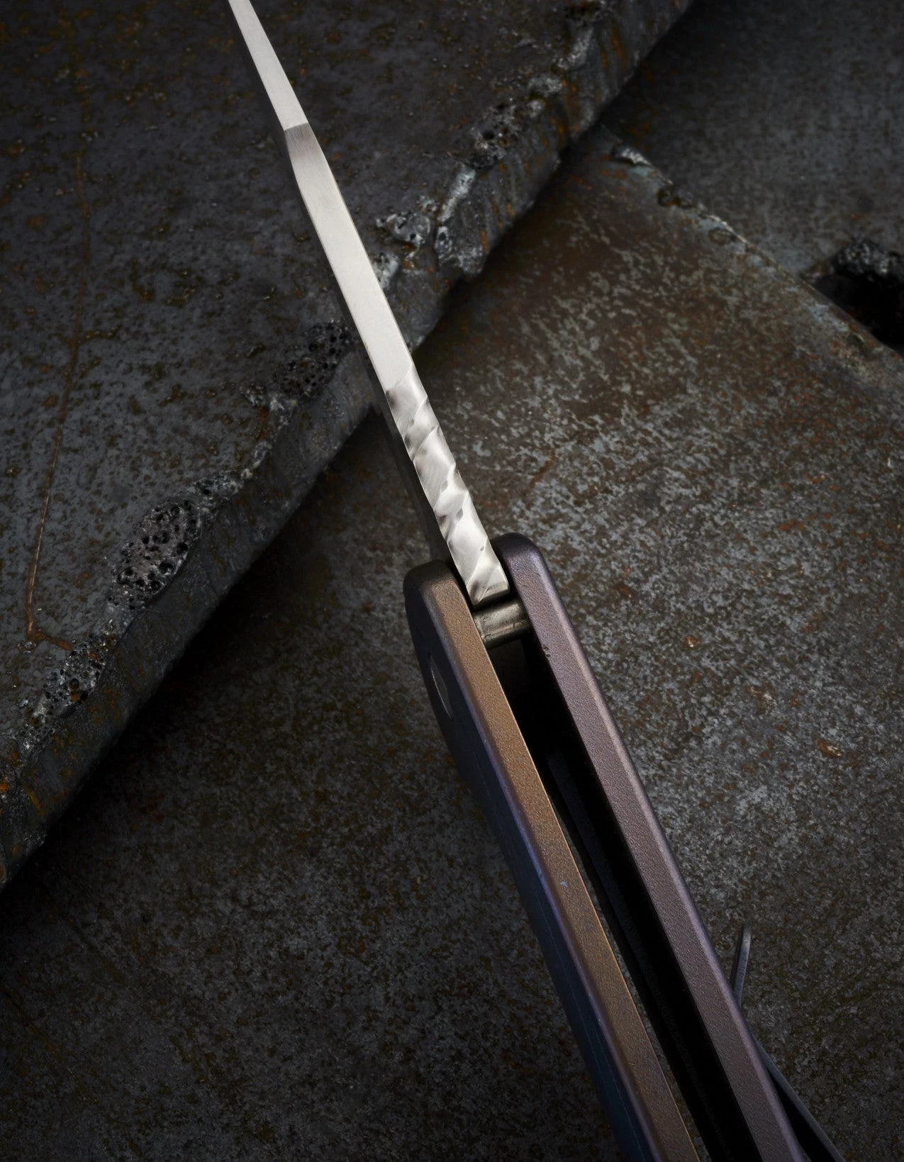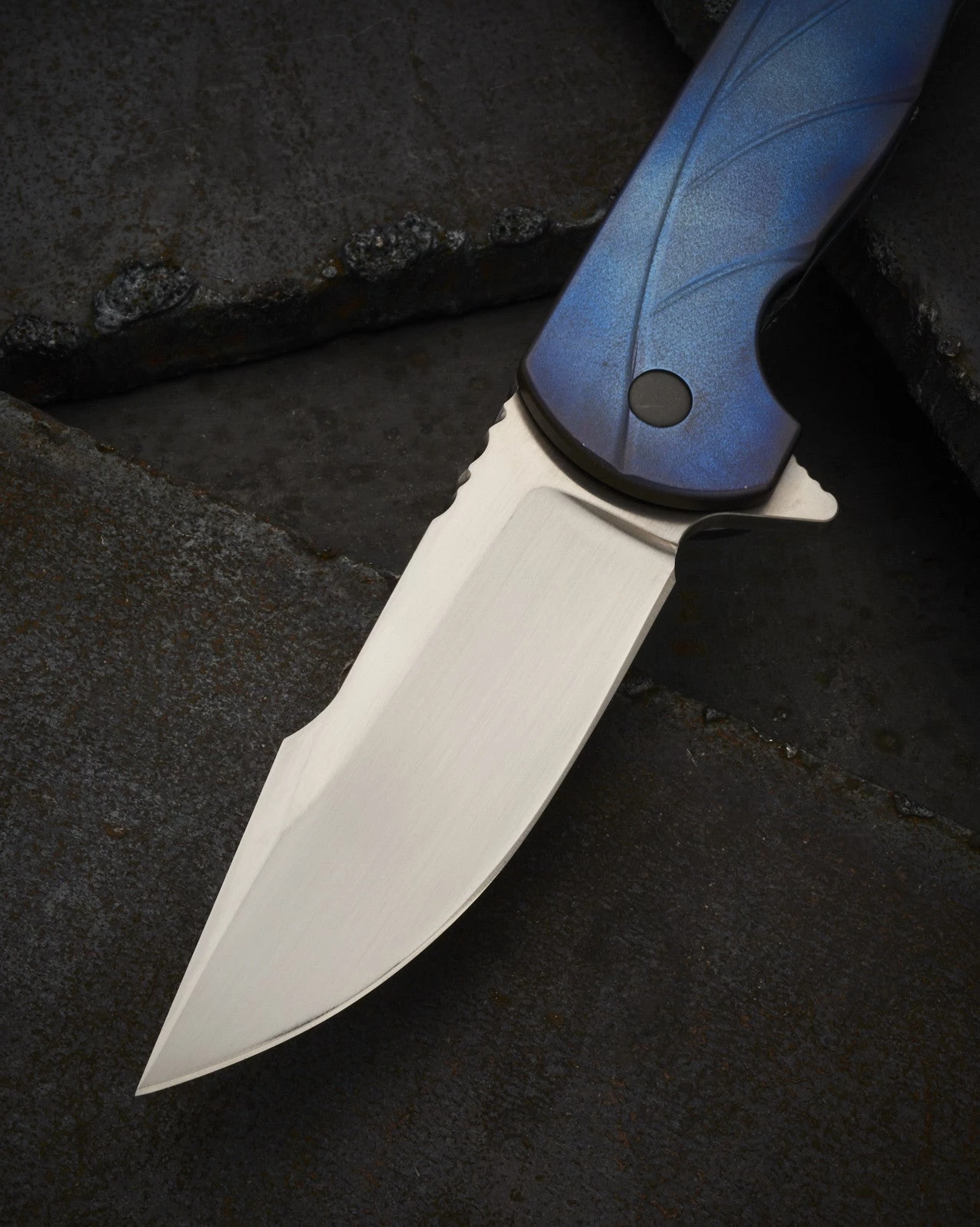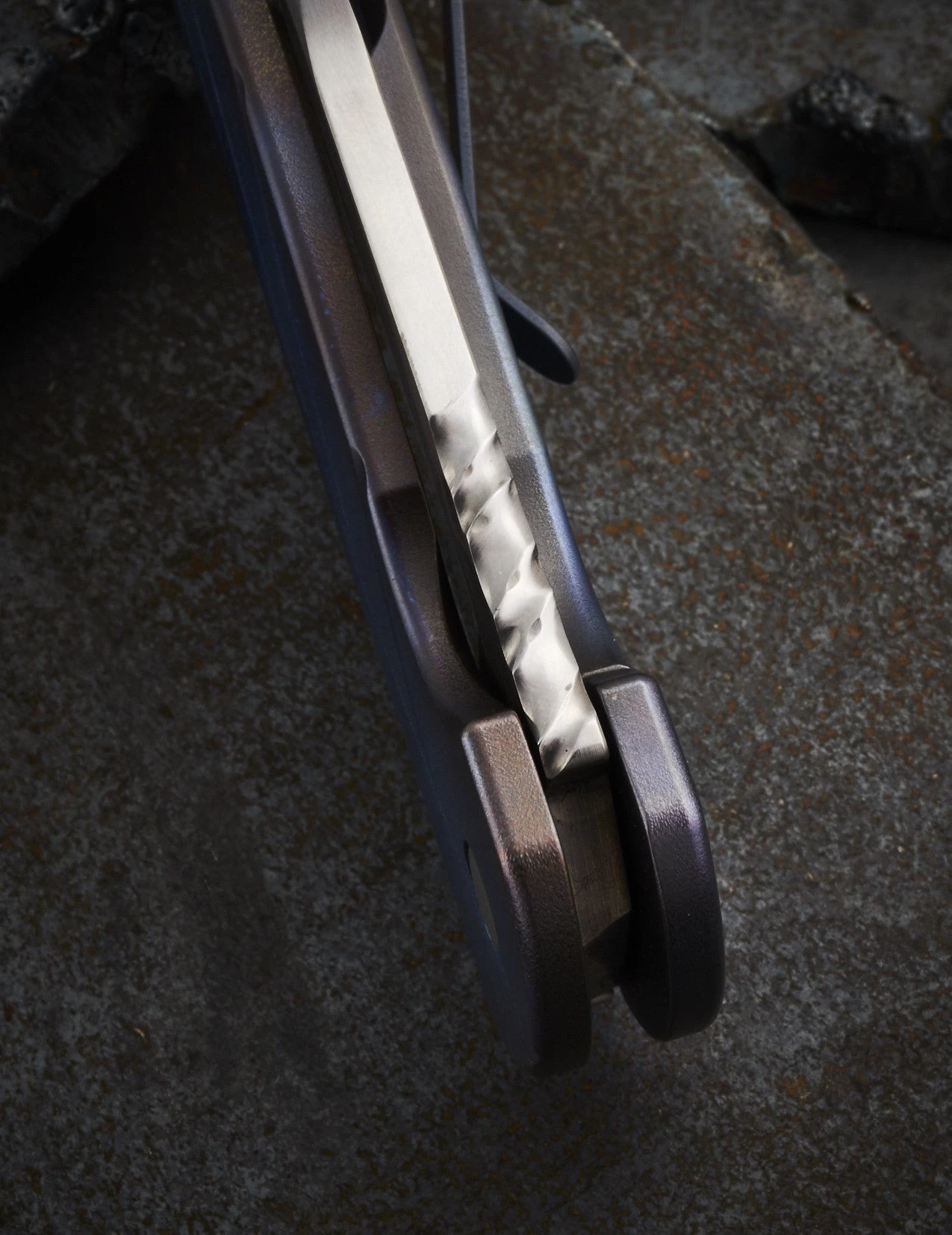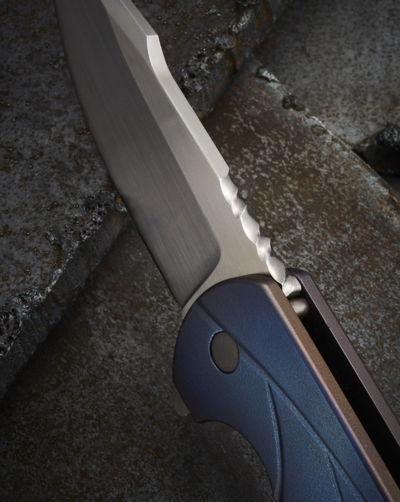 Blade – 3.5″ hand rubbed blade with Hand Filed Jimping