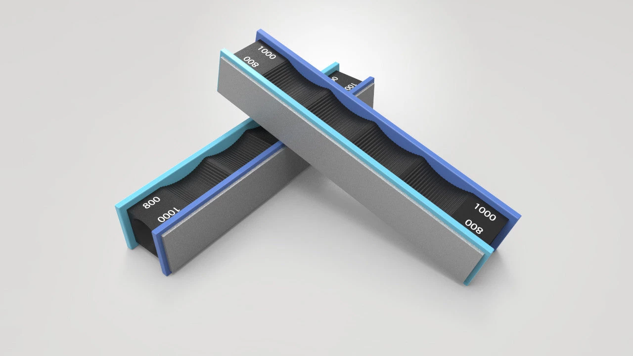 Black & Grey – Ultra Coarse (50) and Extra Coarse (80) Diamond Stones (2 each) mounted on handles. These stones are fast and aggressive, perfect for re-profiling and repairing your damaged blades quickly.Â