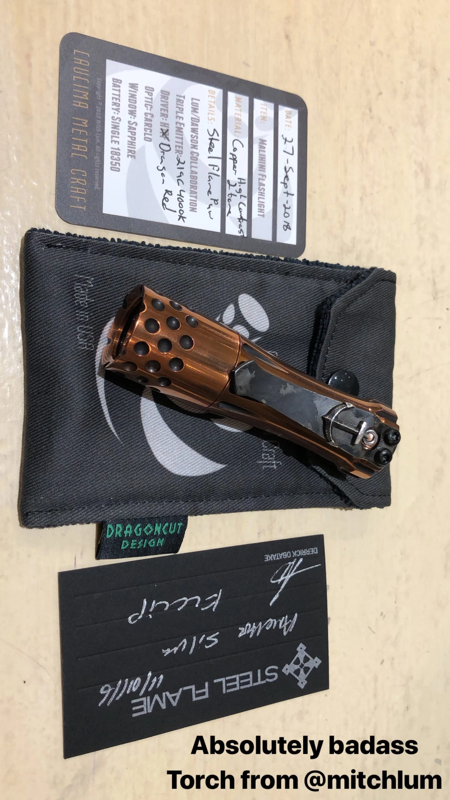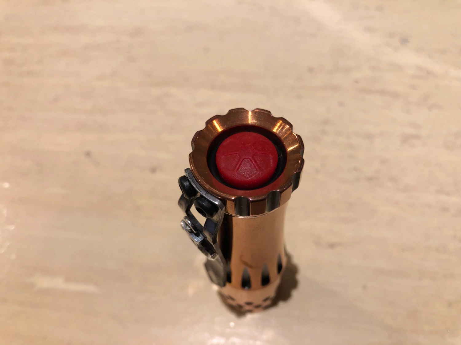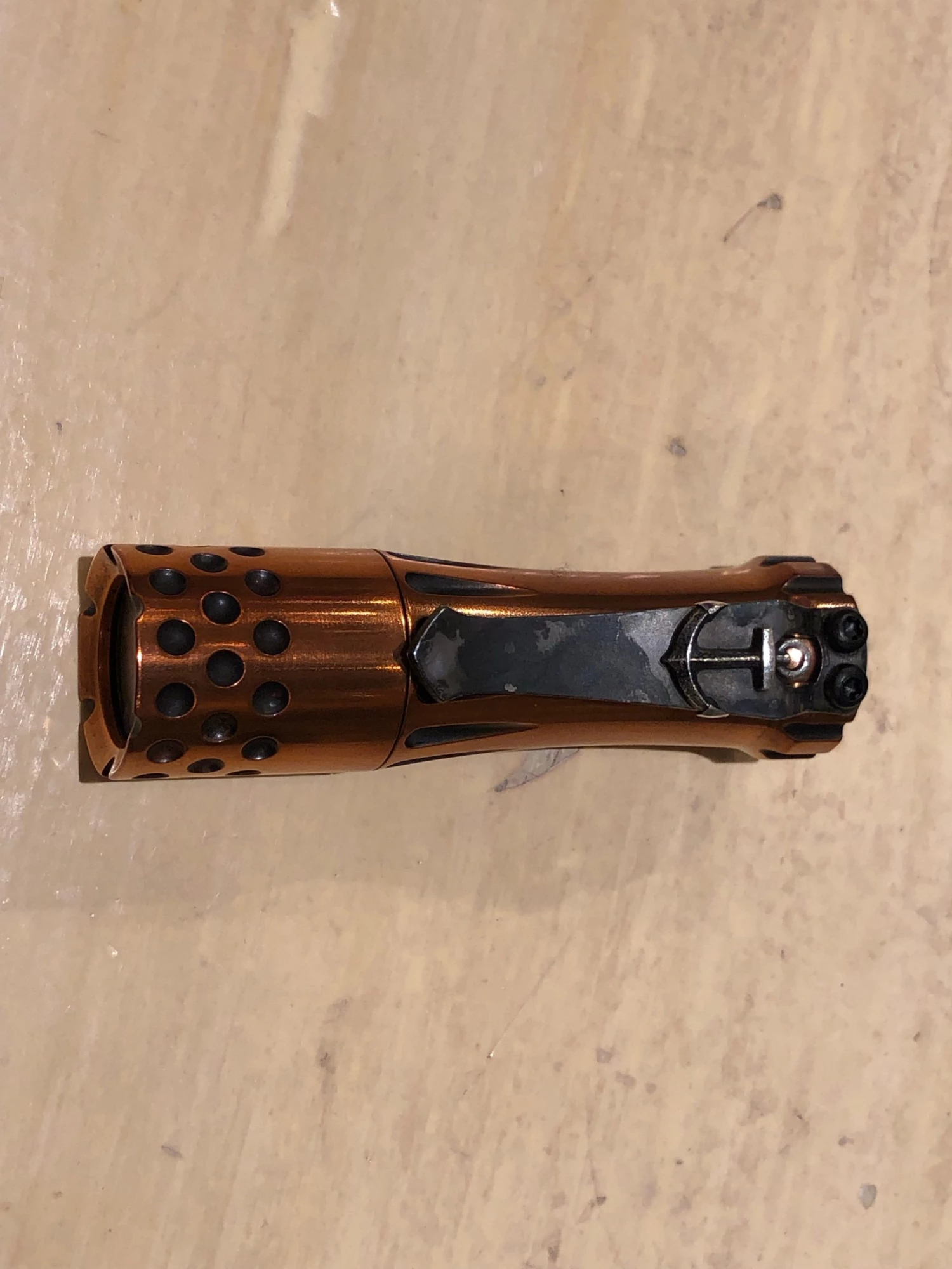 This is a really beautiful Torch. Incredible high contrast 2-tone copper body with the upgraded engine. Steel flame clip is not included. Â