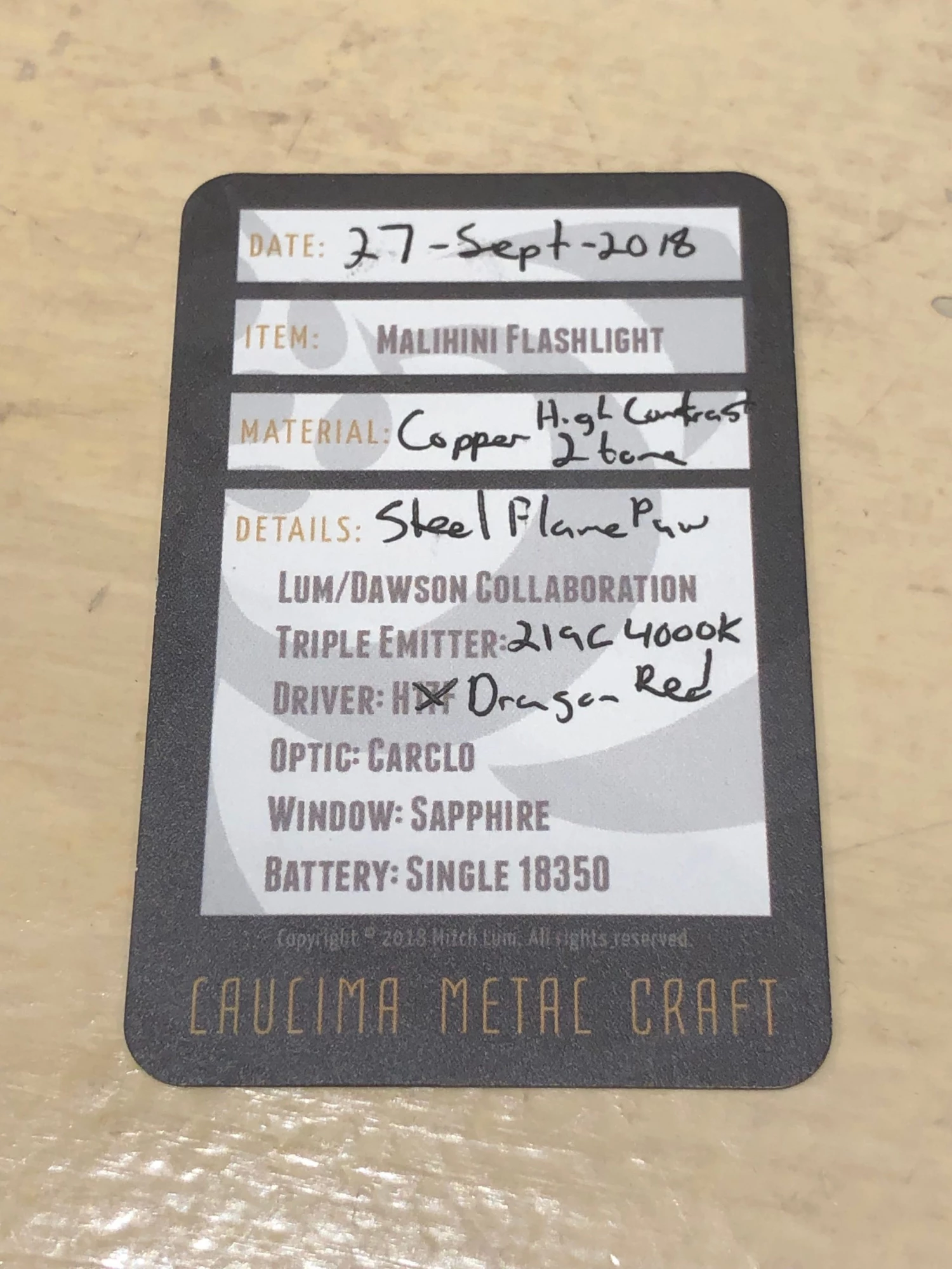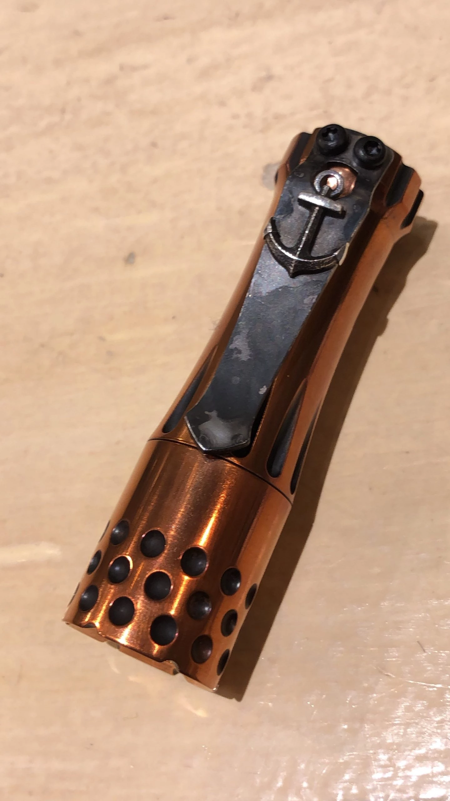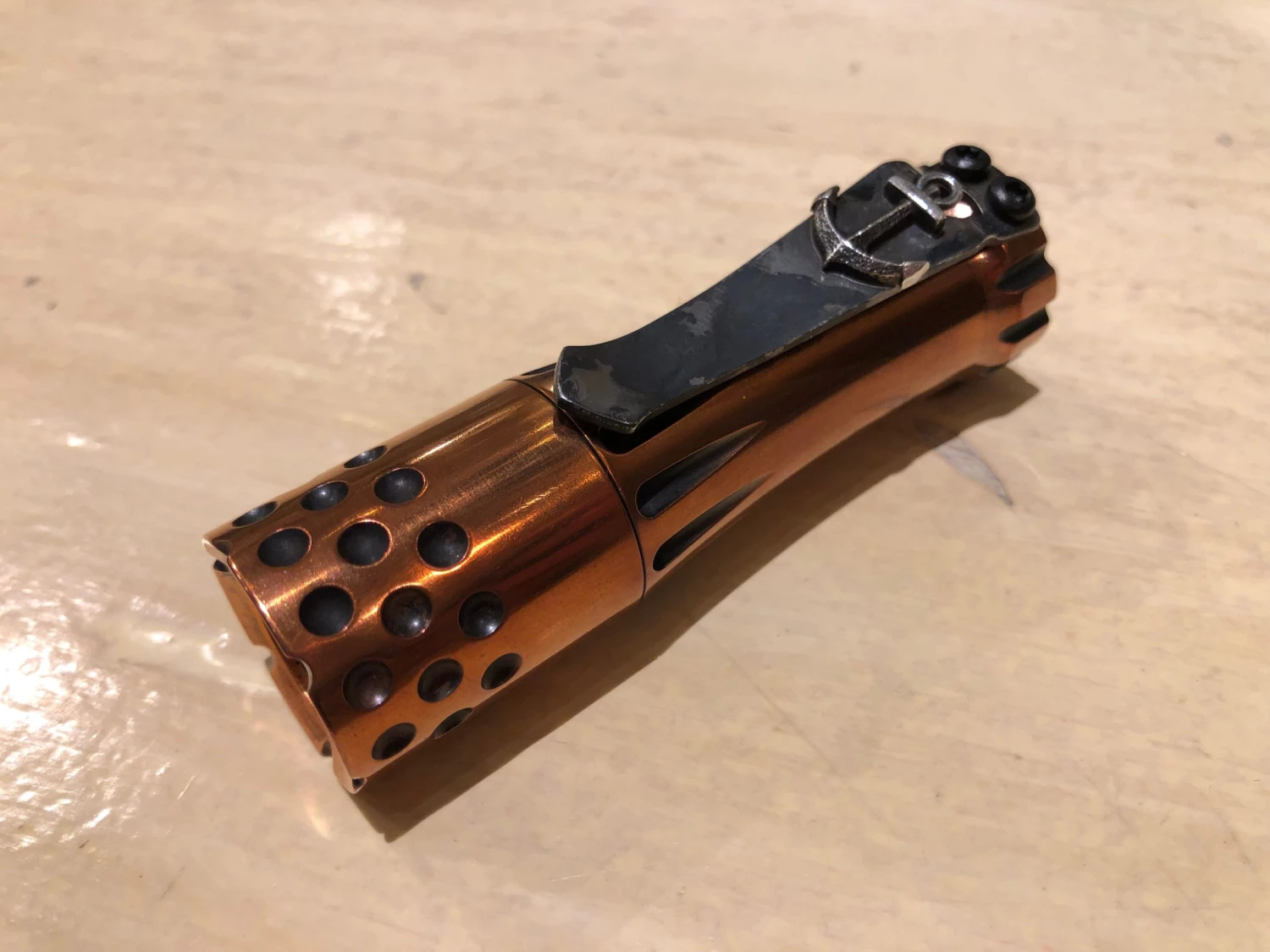 This is a really beautiful Torch. Incredible high contrast 2-tone copper body with the upgraded engine. Steel flame clip is not included. Â