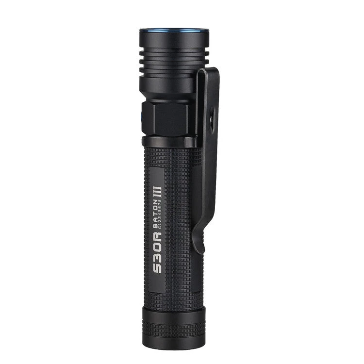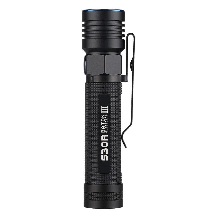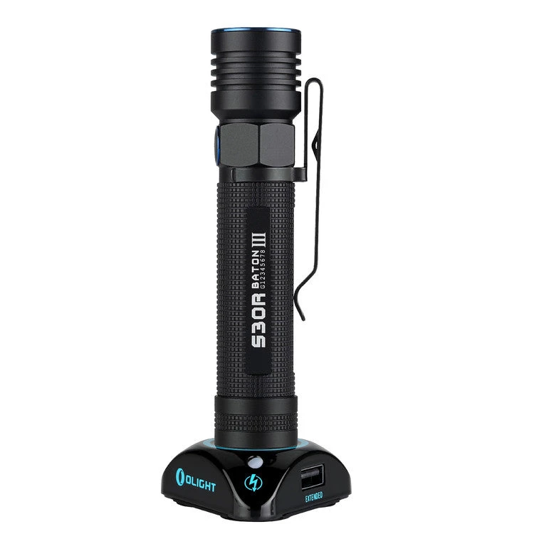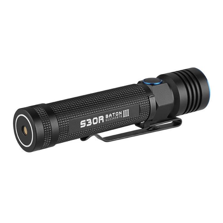 The S30R Baton IIIÂ (S30R III in short) is the third generation of our flagship S30R flashlight series. This flashlight includes our signature Olight blue accents with the latest Cree XM-L2 LED that covers an output range from 0.5~1,050 lumens. The S30R III is equipped with our Olight branded high performance 3500mAh 18650 rechargeable battery and USB desktop charger with suction cups on the bottom for improved stability on any surface. The S30R III is also compatible with the portable USB magnetic charging cable as an optional charging accessory (MCC) which can work with power banks for charging on the go. The high output, portability, convenient charging, and long runtime can meet all your illumination needs for home, travel, and the great outdoors.