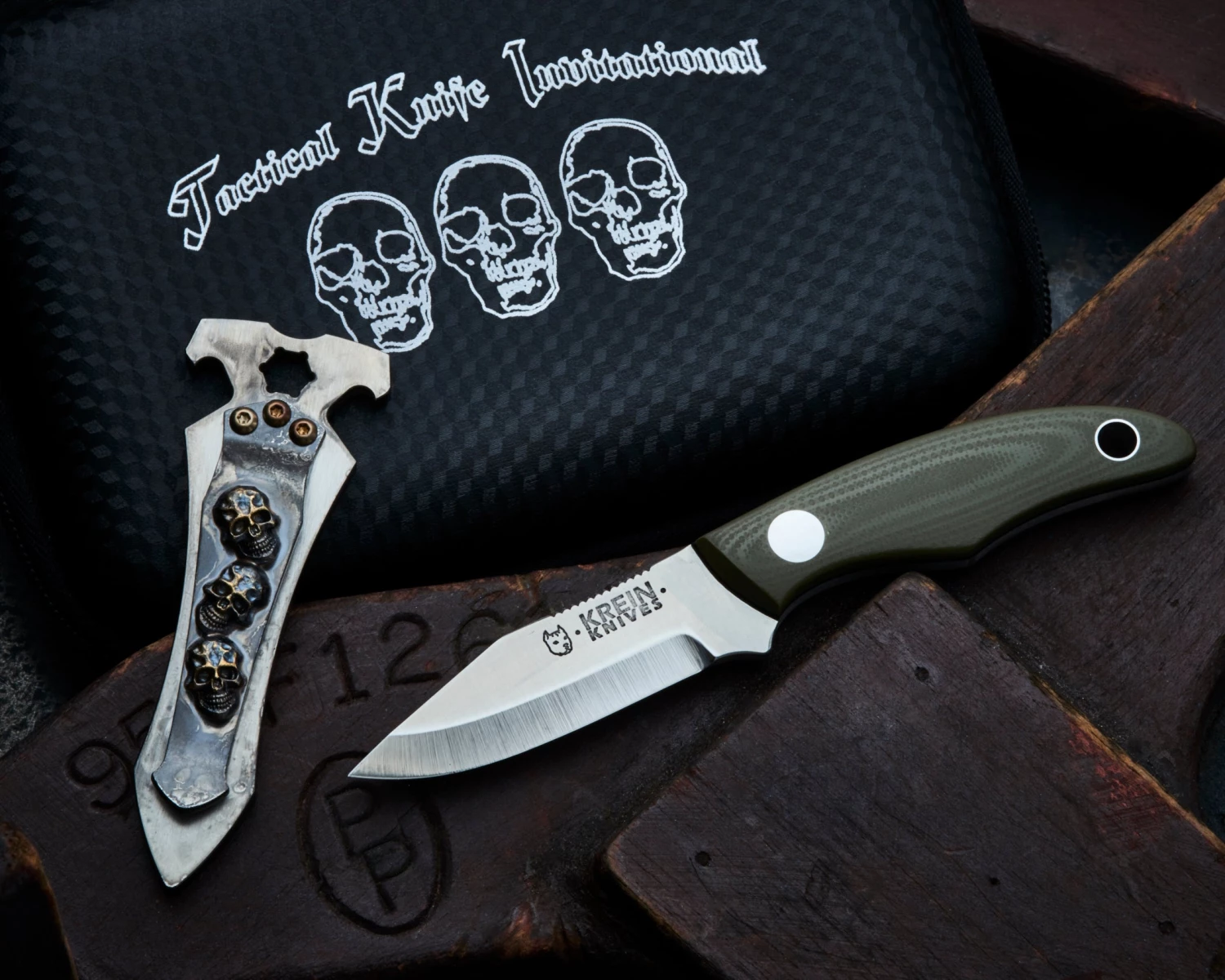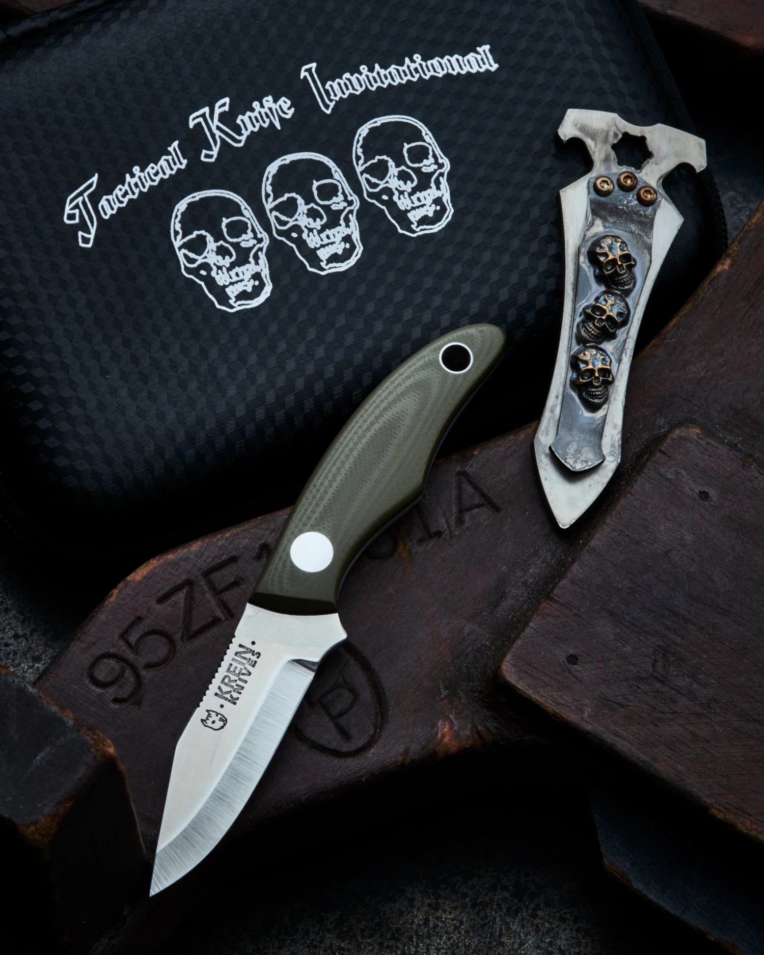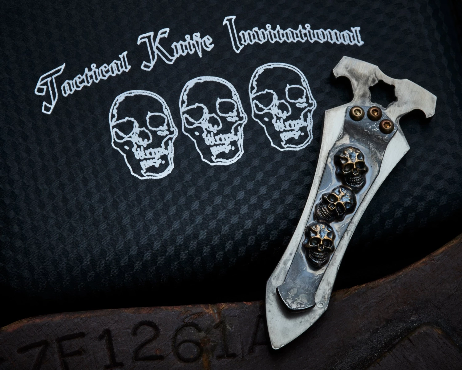 Info – SF trademark Darkness Skull pocket clip with TKI Skull logo on reverse side. All in One Money Clip, Bottle Opener, and Multi-tool which can hold a 1/4″ hex bit