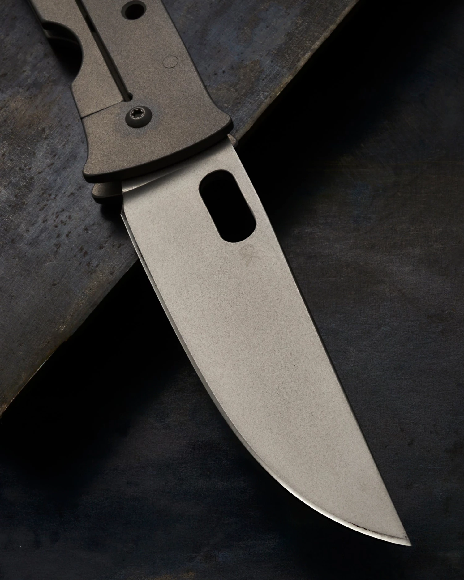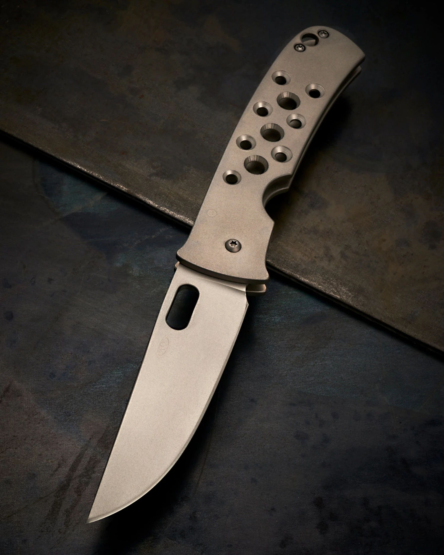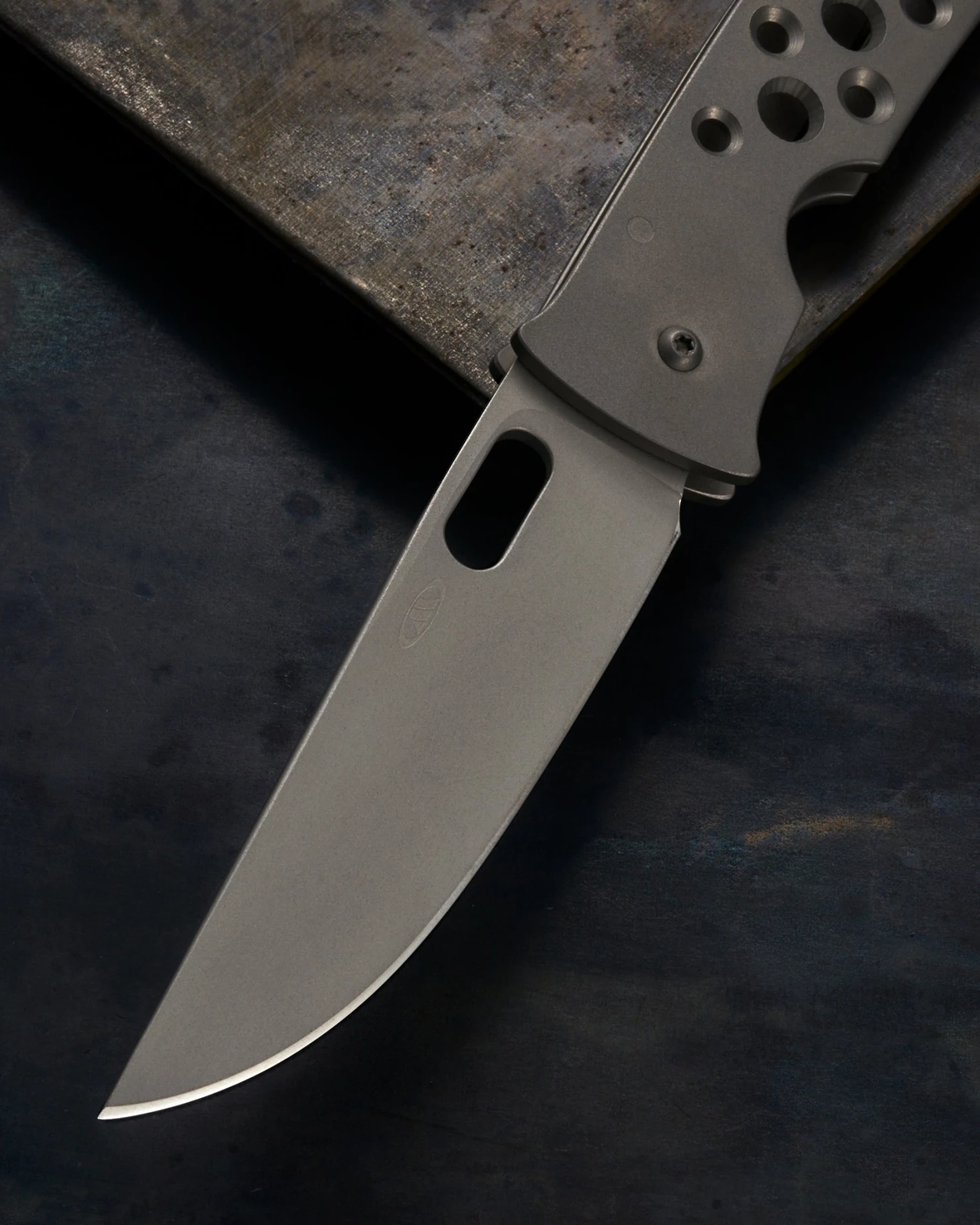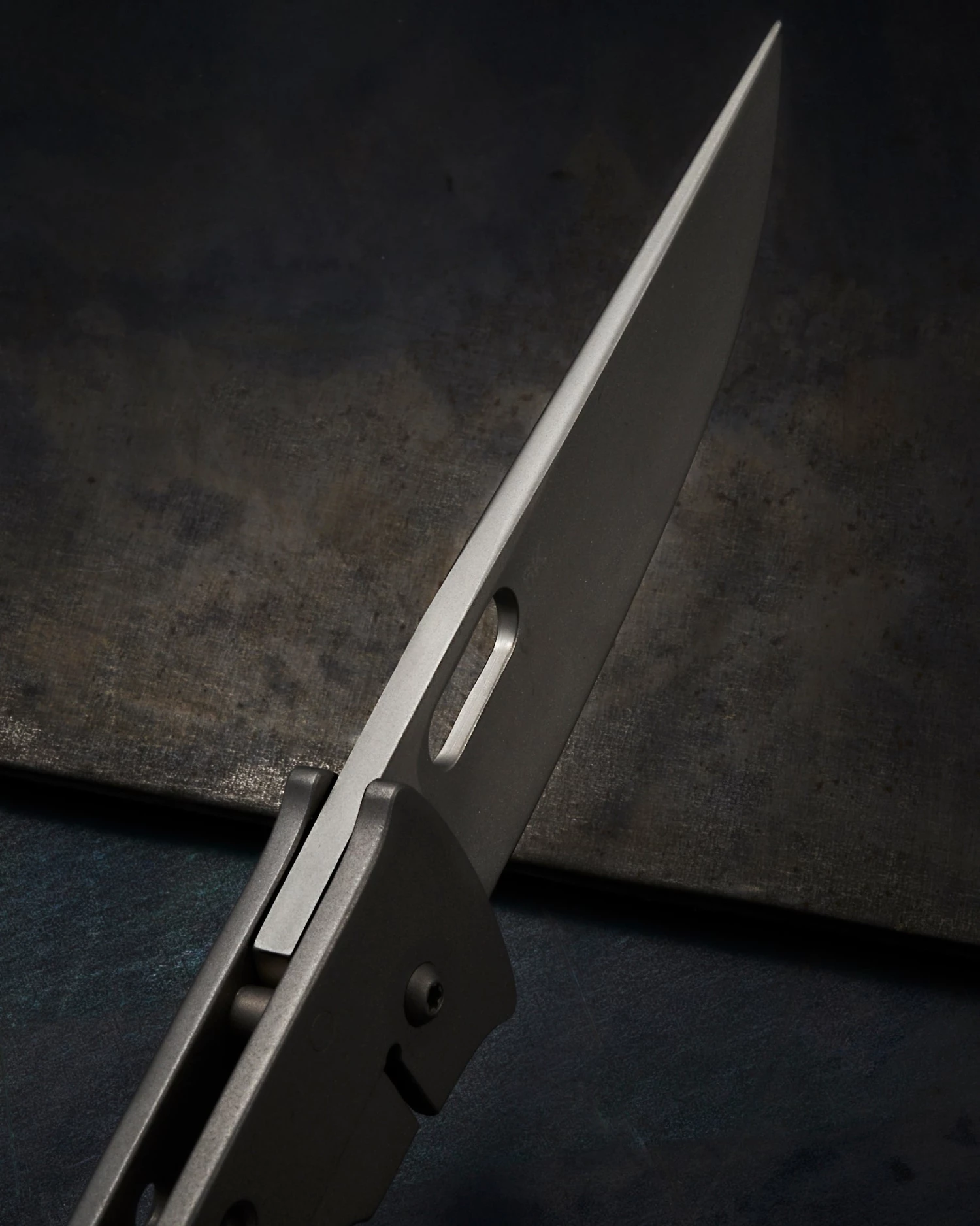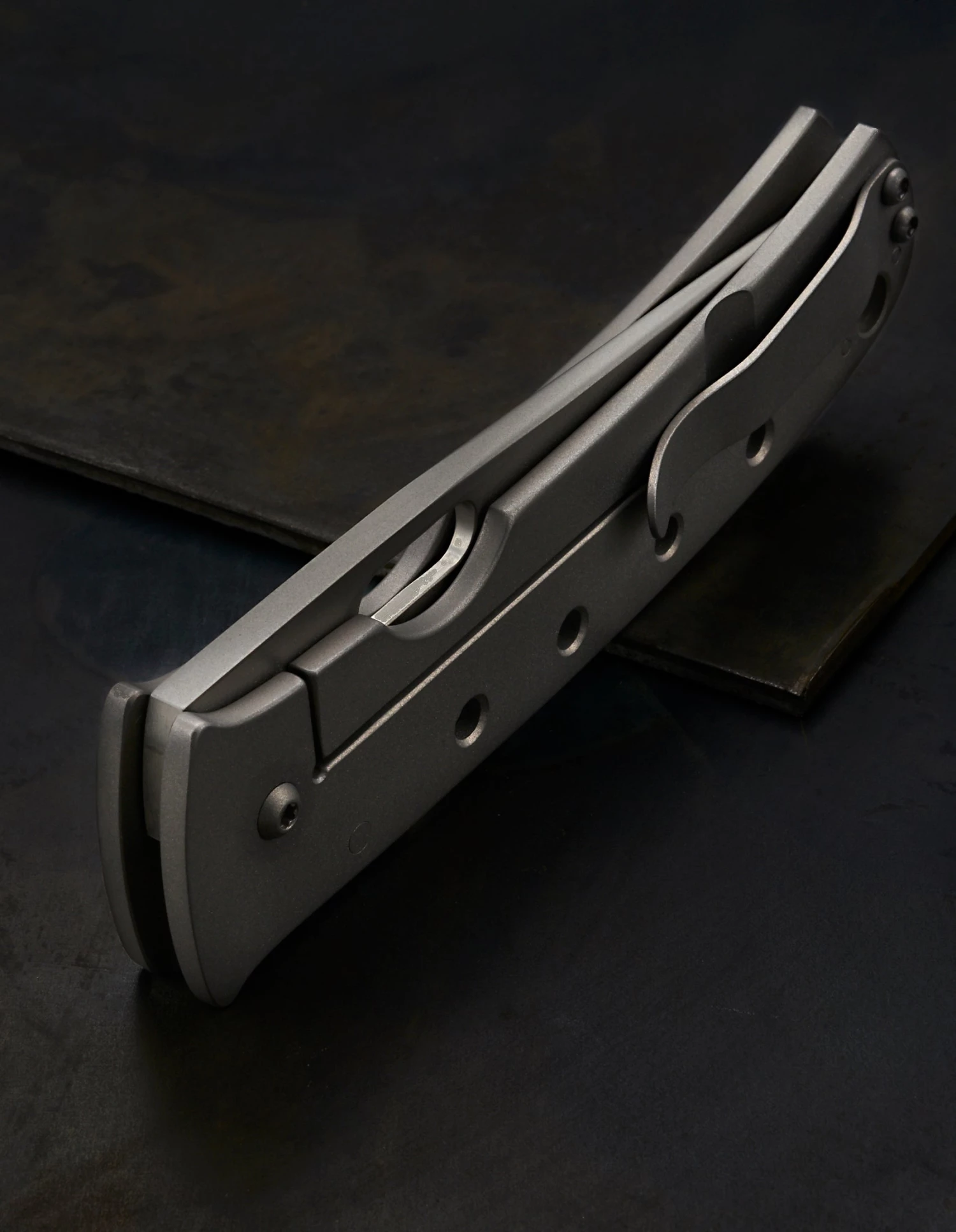 Handle – 4.8″ Bead Blasted Titanium with Mayo holes on show scale. Titanium Hardware