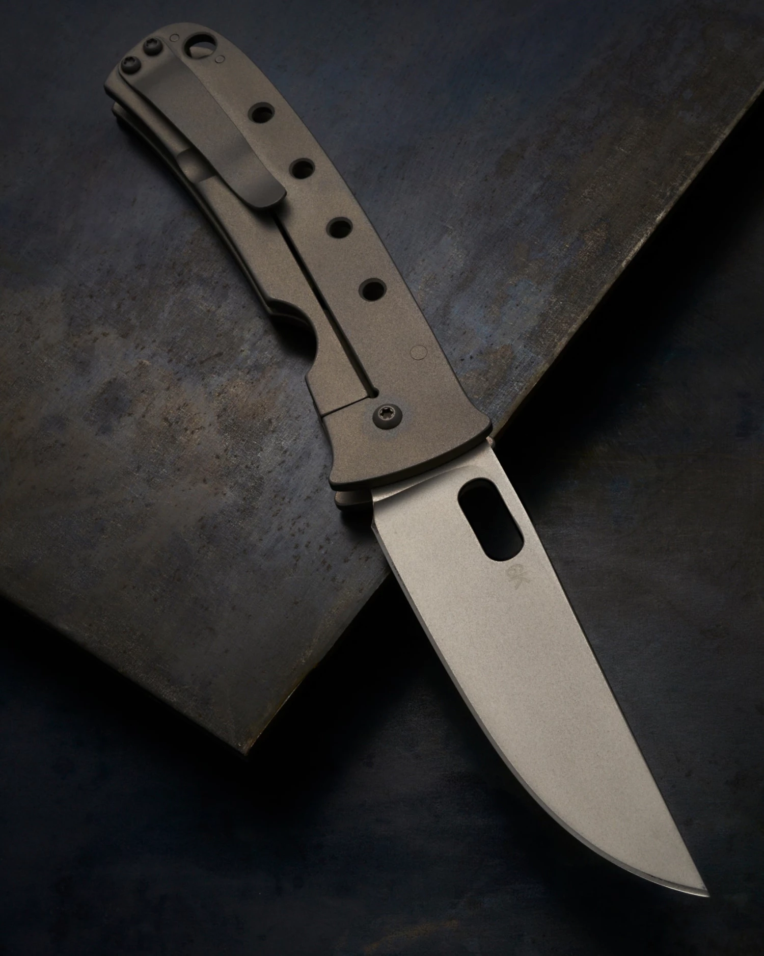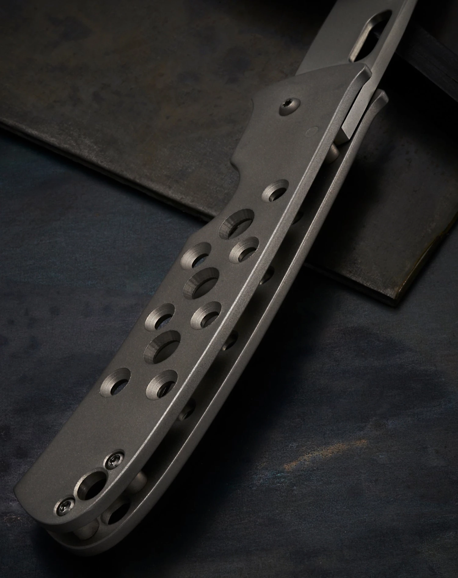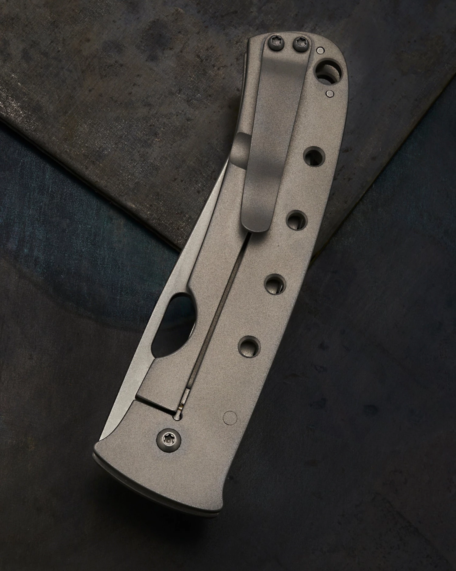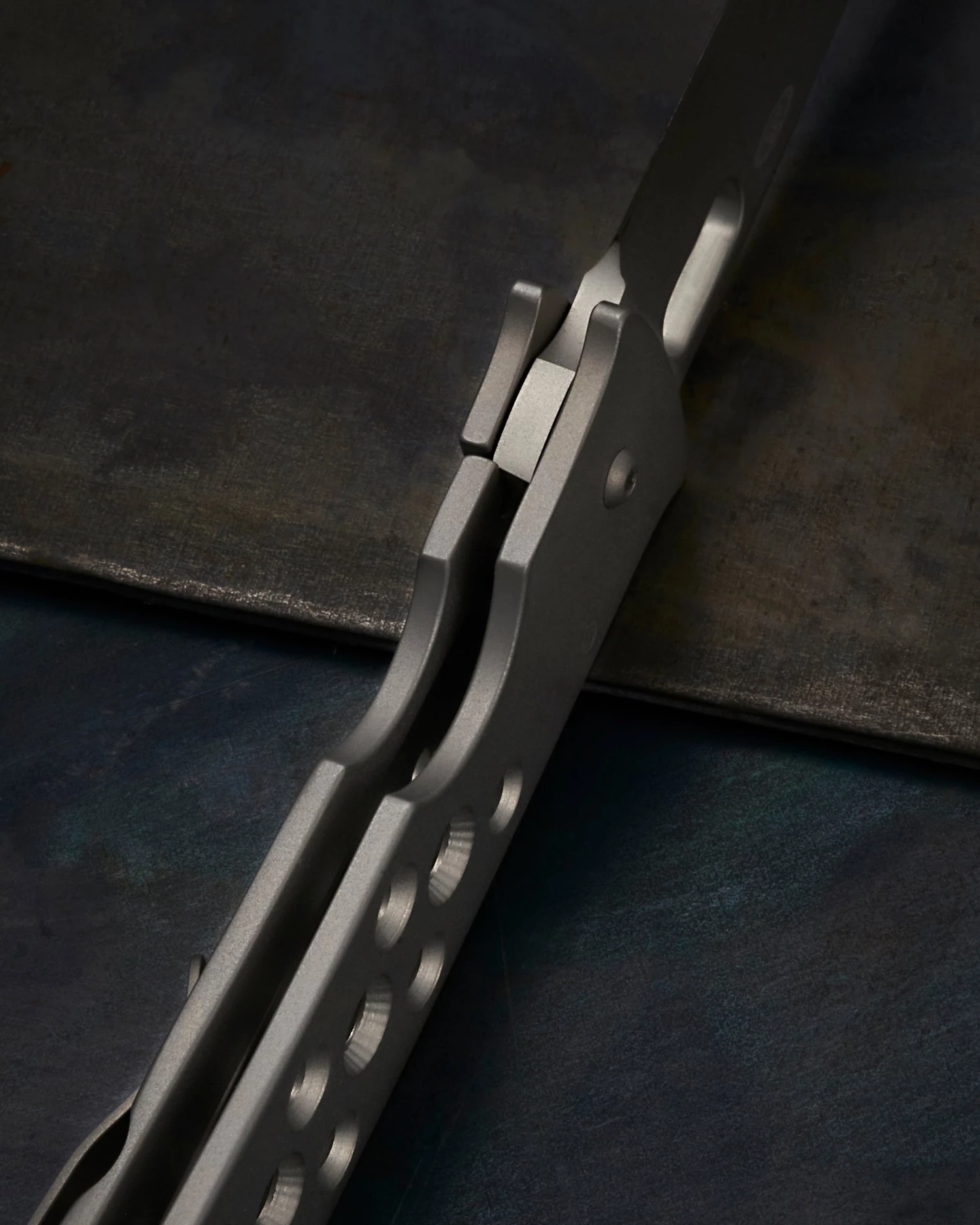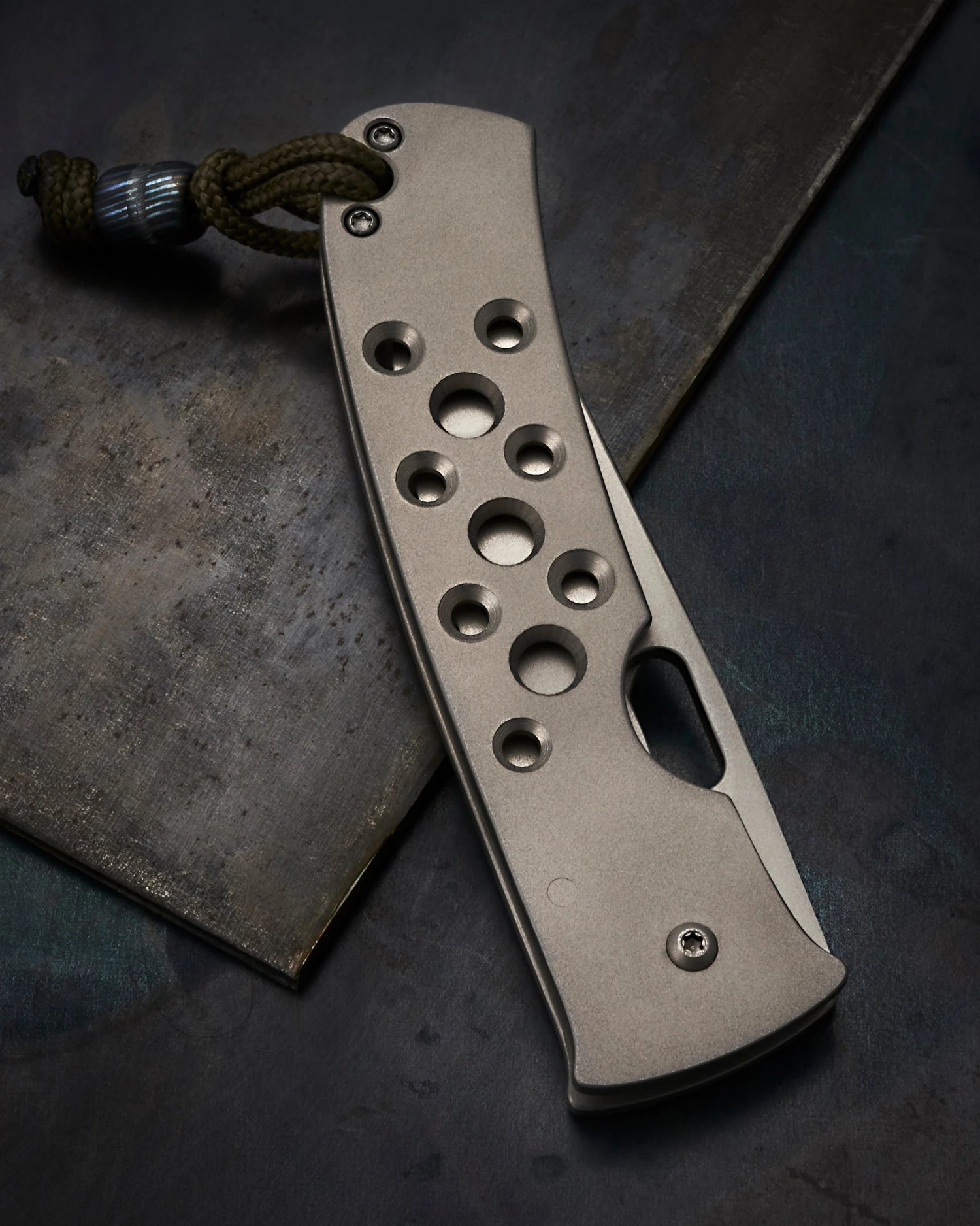 Handle – 4.8″ Bead Blasted Titanium with Mayo holes on show scale. Titanium Hardware