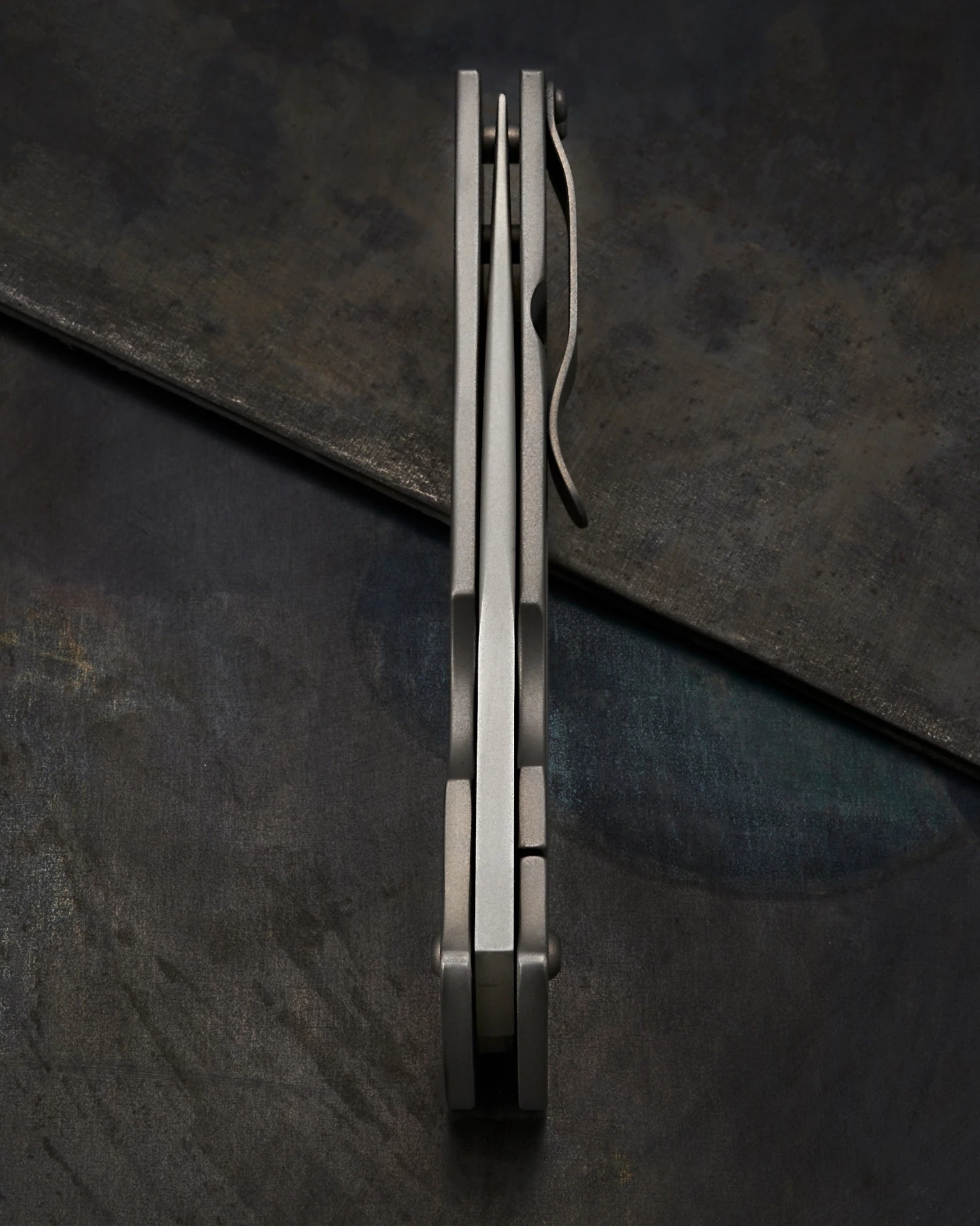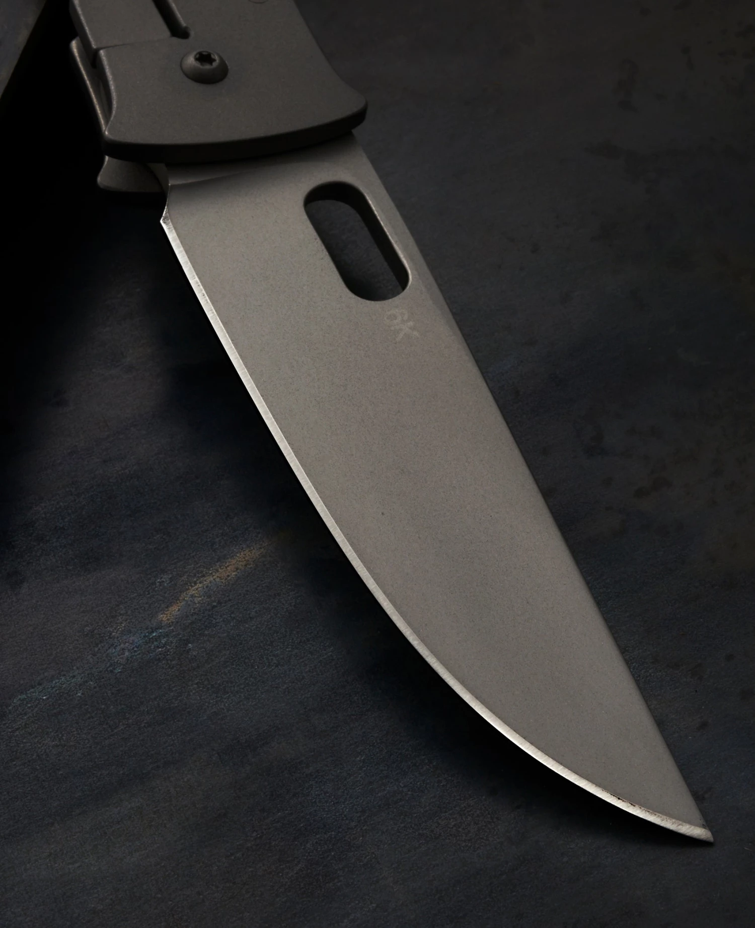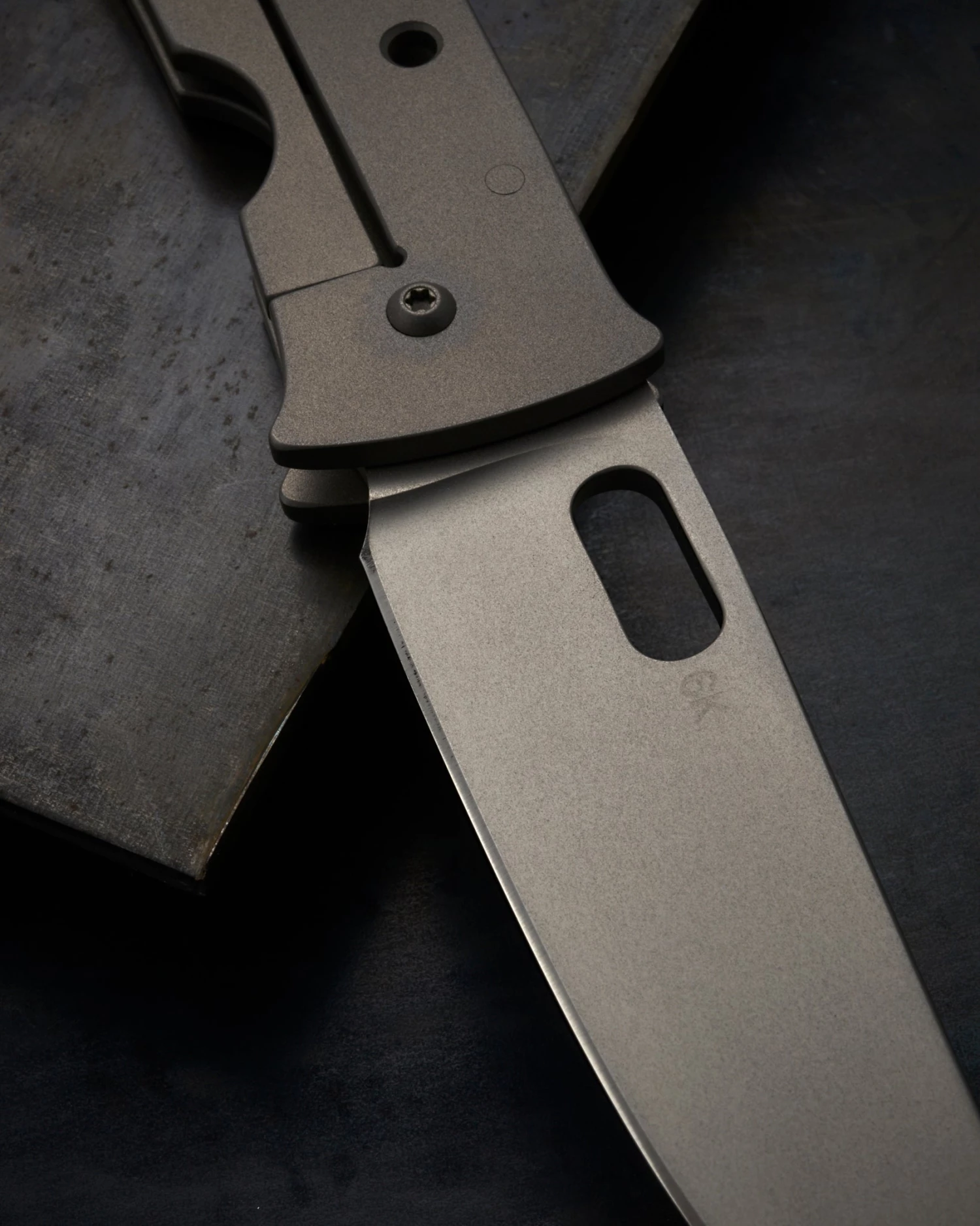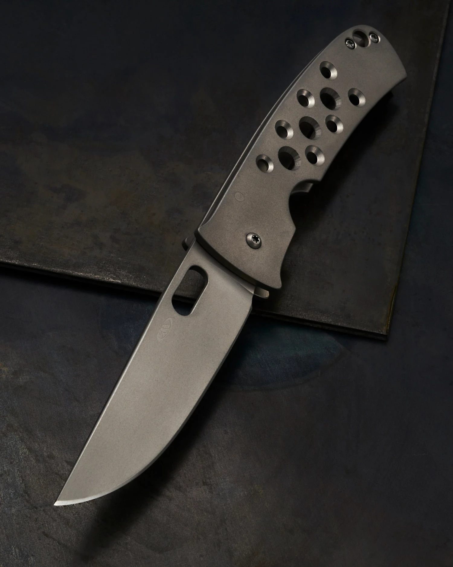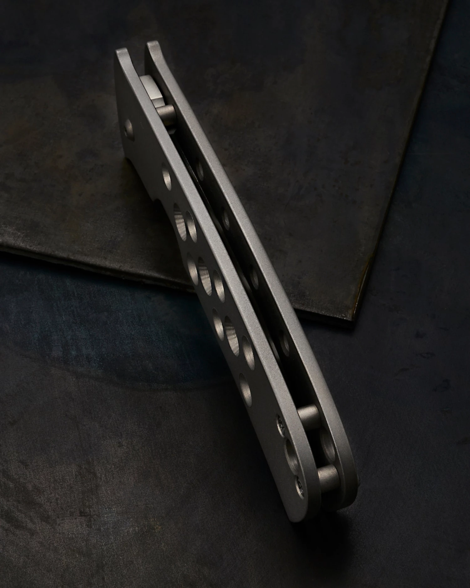 Handle – 4.8″ Bead Blasted Titanium with Mayo holes on show scale. Titanium Hardware